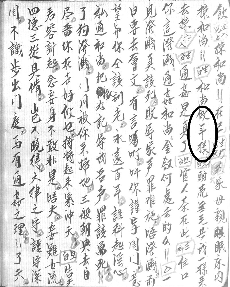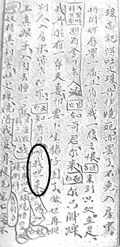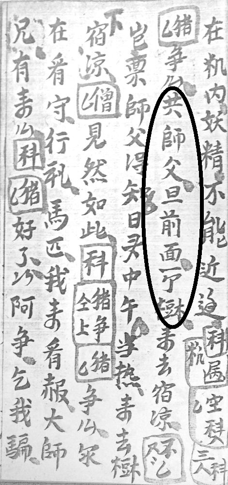 一方で、「どのように」という意味で「怎麼」という官話的表現(図7囲み部分)も用いられている。この部分の小説『西遊記』の対応箇所を見ると、やはり「怎麼」が使われているだけでなく、文章自体も全く同じになっており、ここから台湾皮影戯は小説の文章を官話的な表現も含めて引き写したことが分かる(図8)。