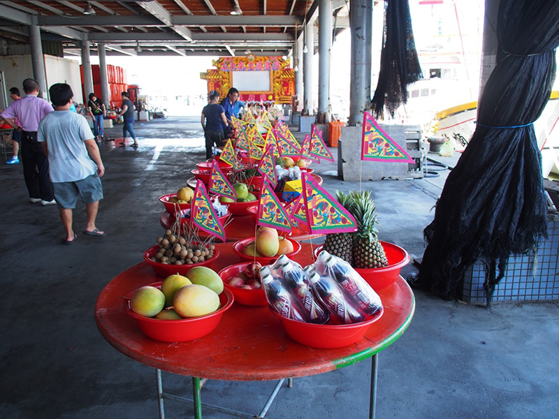 一つには、弥陀区と林園区に歴史的な結びつきが存在する可能性があることである。例えば林園区漁会での上演で紙銭焼却を行った鳳芸宮という媽祖廟では、安平の霊済殿まで船で詣でる海上巡礼を行っているが、途中弥陀区の港近くを通りかかった時に、住民が巡礼船を歓迎することが習わしになってい る*5。巡礼が固定化されたのは近年になってからだが、両者は以前から海上ルートで繋がっていたものと思われる。