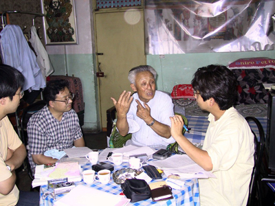 2001年11月に千田大介氏が行った予備調査を通して研究協力態勢を確立した、山西省孝義在住の影人作家・収集家である侯丕烈氏の紹介で*1、2002年8月21日に晋中皮影戯の老芸人梁全民氏へのインタビューを行うことができた。場所は孝義市文化局内の侯丕烈氏宅で、メンバーは氷上正・千田大介・山下一夫・戸部健、また座には侯丕烈氏も同席し、時にやや耳の遠い梁全民氏を補佐する役割も果たしていただいた。
