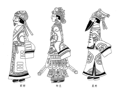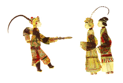 海寧皮影戯は、現地では「影子戯」・「百紙頭阿三」・「紙人」などと称されている*14。「紙頭」・「紙人」と呼ばれるのは、『都城紀勝』・『夢梁録』の、当初紙製であった影人が後に羊皮で作られるようになった、という記述に対応するものである。