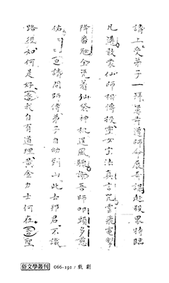 このほか、ハーバード燕京インスティテュートに多くの北京皮影戯単齣台本集が所蔵され*6、『俗文学叢刊』第273冊が台湾中央研究院所蔵の単齣台本集9種を収録し、早稲田大学演劇博物館が1点所蔵しているほか、いくつかの図書館・研究機関も同種の資料を所蔵している。