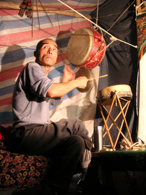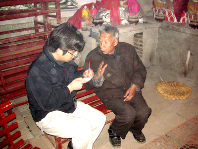 今次の調査では、孝義市郊外の必独村の武氏宅を訪問し、武海棠氏の経歴・家系、劇団の変遷、旧時の具体的な上演状況について聞き取り調査をおこない、あわせて武家班、および2002年度に訪問調査した梁全民氏による、碗碗腔・皮腔皮影戯の上演を鑑賞・記録した。
