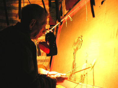 今回訪問調査した武海棠氏(66)は、数少ない皮腔皮影戯の老芸人である。武氏は清末当地に存在した皮影・木偶劇団、二義園を経営していた一族であり、既に六世代にわたって皮影戯に従事している。